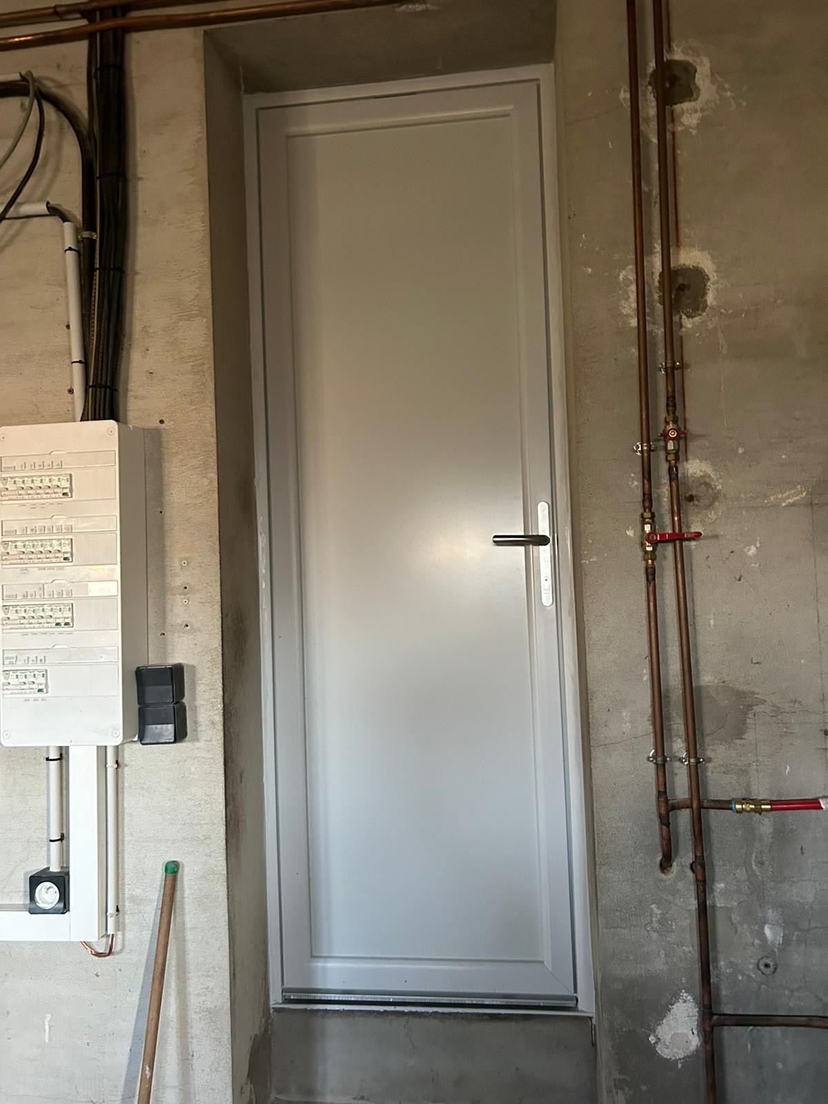 - Cinq fenêtres, une porte-fenêtre et une porte de service en PVC RAL gris 7035